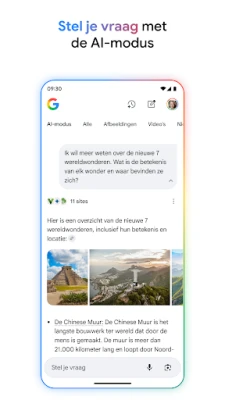 Ontdek de wereld om je heen en daarbuiten met de Google-app, jouw persoonlijke toegangspoort tot een oneindige bron van kennis. Of je nu op zoek bent naar die gezellige bistro om de hoek, de nieuwste bioscoopreleases met castdetails en recensies, of de live stand van je favoriete sportwedstrijd, de Google-app levert het direct. Van actuele nieuwsberichten en aandelenkoersen tot boeiende video's en heldere afbeeldingen, alles wat het internet te bieden heeft, ligt binnen handbereik. Deze intelligente assistent maakt het vinden van informatie moeiteloos en efficiënt.