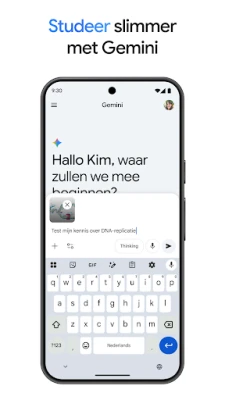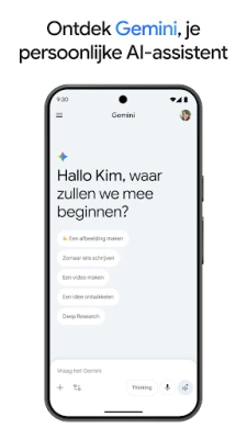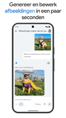 **Gemini** kan, indien geactiveerd, uw primaire assistent op de telefoon worden, ter vervanging van de Google Assistent. Dit plaatst een intuïtieve en intelligente partner binnen handbereik, klaar om u te ondersteunen bij elke uitdaging. De applicatie stelt u in staat om verbluffende afbeeldingen te creëren en te bewerken met slechts enkele woorden en vergemakkelijkt het plannen van reizen als nooit tevoren. Bovendien krijgt u altijd beknopte samenvattingen, diepgaande analyses en relevante bronlinks, allemaal overzichtelijk gepresenteerd. Vergeet niet de indrukwekkende beeldgeneratie van Nano Banana, aangedreven door Gemini 2.5 Flash, te verkennen voor een voorproefje van geavanceerde creatie.