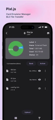 Voor Pixl.js-gebruikers biedt Mifare Classic Tools een handige BLE-bestandsoverdracht, een dump-uploader, de mogelijkheid om slotnamen te bewerken en firmware-upgrades uit te voeren. Het beheer van uw gegevens wordt verder gestroomlijnd met de Mifare Dump-functie, waarmee u dumps kunt importeren en delen in diverse formaten zoals bin, mct of json, en deze zelfs kunt omzetten naar bruikbare sleutels. Beheer uw toegangs- en versleutelingssleutels efficiënt met Mifare Keys, met overzichten van publieke sleutels, privé-sleutels per gebruiker en een historische weergave per kaart. De Tag Scanner maakt het loggen en delen van Tag ID's eenvoudig, terwijl de geïntegreerde OTA Tool een firmware-repository biedt voor altijd up-to-date hardware.