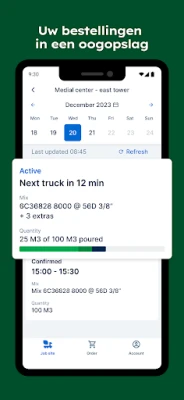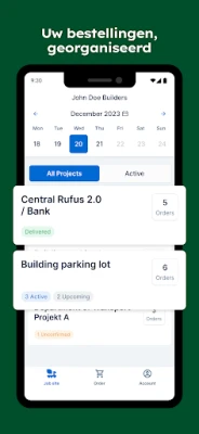 Beheer uw bestellingen met ongekende precisie. **OnSite** biedt u een helder en direct overzicht van al uw inkomende leveringen – van vandaag, morgen en de komende week. U kunt eenvoudig details inzien, bestellingen bevestigen en uw planning daarop afstemmen, of u nu een snel beeld wilt of diepgaandere informatie nodig heeft. Organiseer uw werkzaamheden vlekkeloos door een duidelijk beeld te krijgen van alle lopende en geplande projecten, werven en bijbehorende leveringen, zodat u altijd optimaal bent voorbereid.