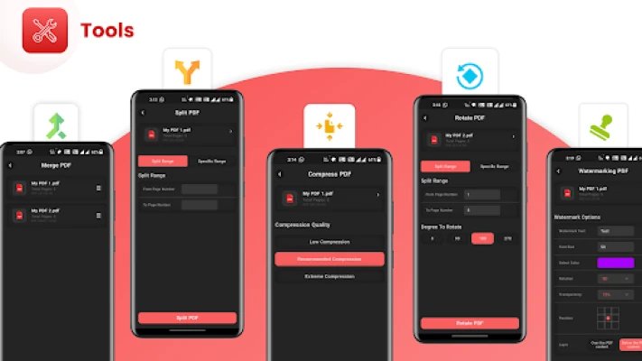 Beheer uw PDF's moeiteloos met deze gratis en lichtgewicht PDF-utility. Voeg samen, splits, comprimeer, verwijder, roteer, herschik pagina's en voeg watermerken toe. Perfect voor studie, facturen, certificaten en bonnen. Werkt offline op mobiel en tablet.