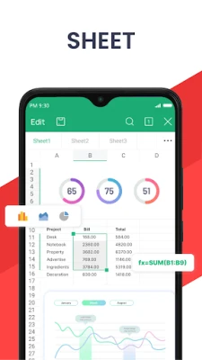 WPS Office excelleert tevens in uitgebreid PDF-beheer. Bekijk, annoteer, onderteken en bewerk PDF's met ongekend gemak. Converteer moeiteloos elk kantoordocument naar PDF en scan papieren documenten direct om. Verlies nooit meer een belangrijk bestand dankzij de krachtige cloudopslag van WPS Office. Met 1 GB gratis opslag in WPS Cloud beheert en synchroniseert u documenten real-time tussen uw mobiele apparaten en computers. De integratie met populaire cloudservices zoals Dropbox, Google Drive en OneDrive biedt extra flexibiliteit en gemoedsrust. Samenwerken is eenvoudiger dan ooit, met tools voor realtime delen en bewerken, ideaal voor teams die op afstand werken. Deel documenten snel via diverse kanalen, van e-mail tot instant messaging, en bouw eenvoudig uw online team op.